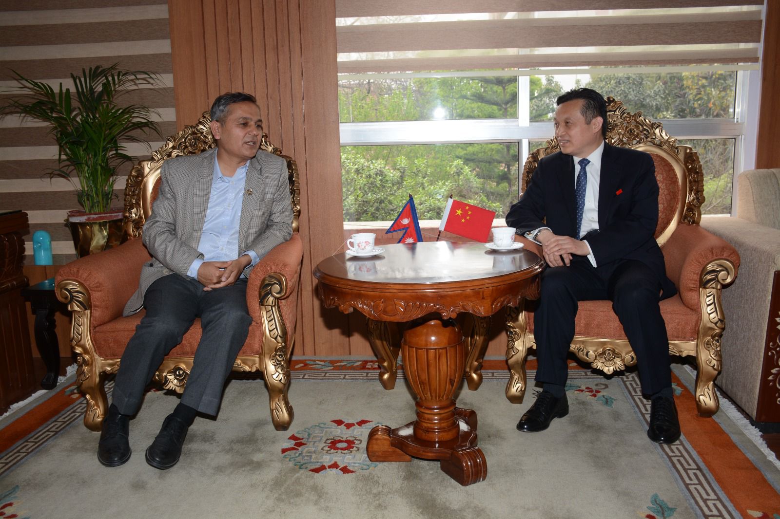 गृहमन्त्री अर्याल र नेपालका लागि चिनियाँ राजदूत चाङ माओमिङल बीच शिष्टाचार भेट
