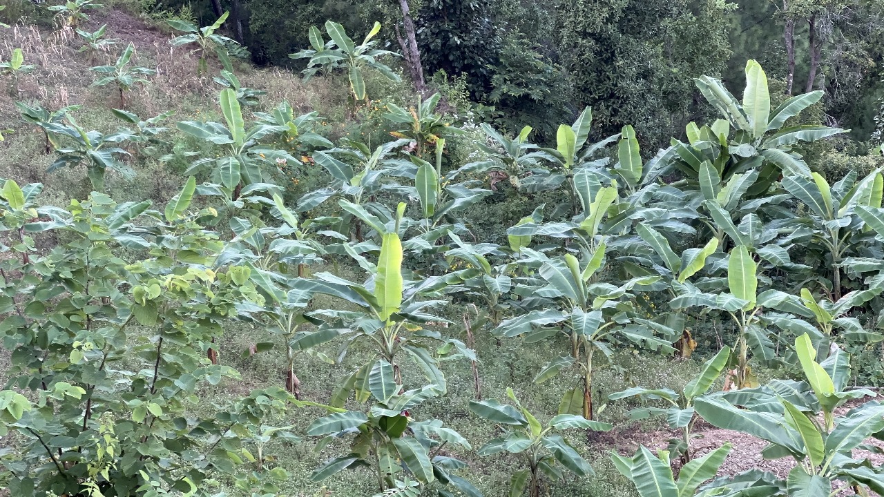 त्यस्तै १० रोपनी जमिनमा मर्चमाने, मालभोग, झप्री, घ्यू लगायतका विभिन्न जातका केरा लगाएका छन् ।