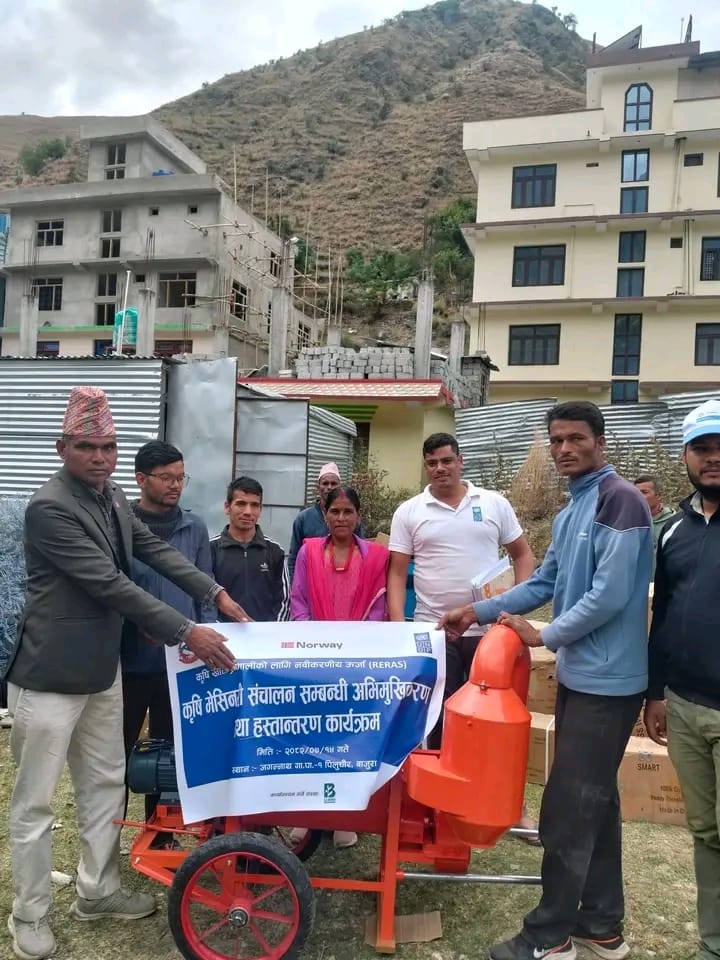 रेरास परियोजनाले ८० प्रतिशत आफ्नो लागतको अनुदान उपलब्ध गराई कृषकहरूका लागि मेसेनरी सामग्री उपलब्ध गराएको हो । सामाग्री वितरणका साथै, कृषक समूहका मेसिनरी अपरेटरहरूलाई मेसिन फिटिंग, सञ्चालन र मर्मतसम्भार सम्बन्धी प्राविधिक तालिम पनि प्रदान गरिएको ली–बर्ड बाजुराका कलष्टर संयोजक लोकेश कुमार थापाले बताए ।