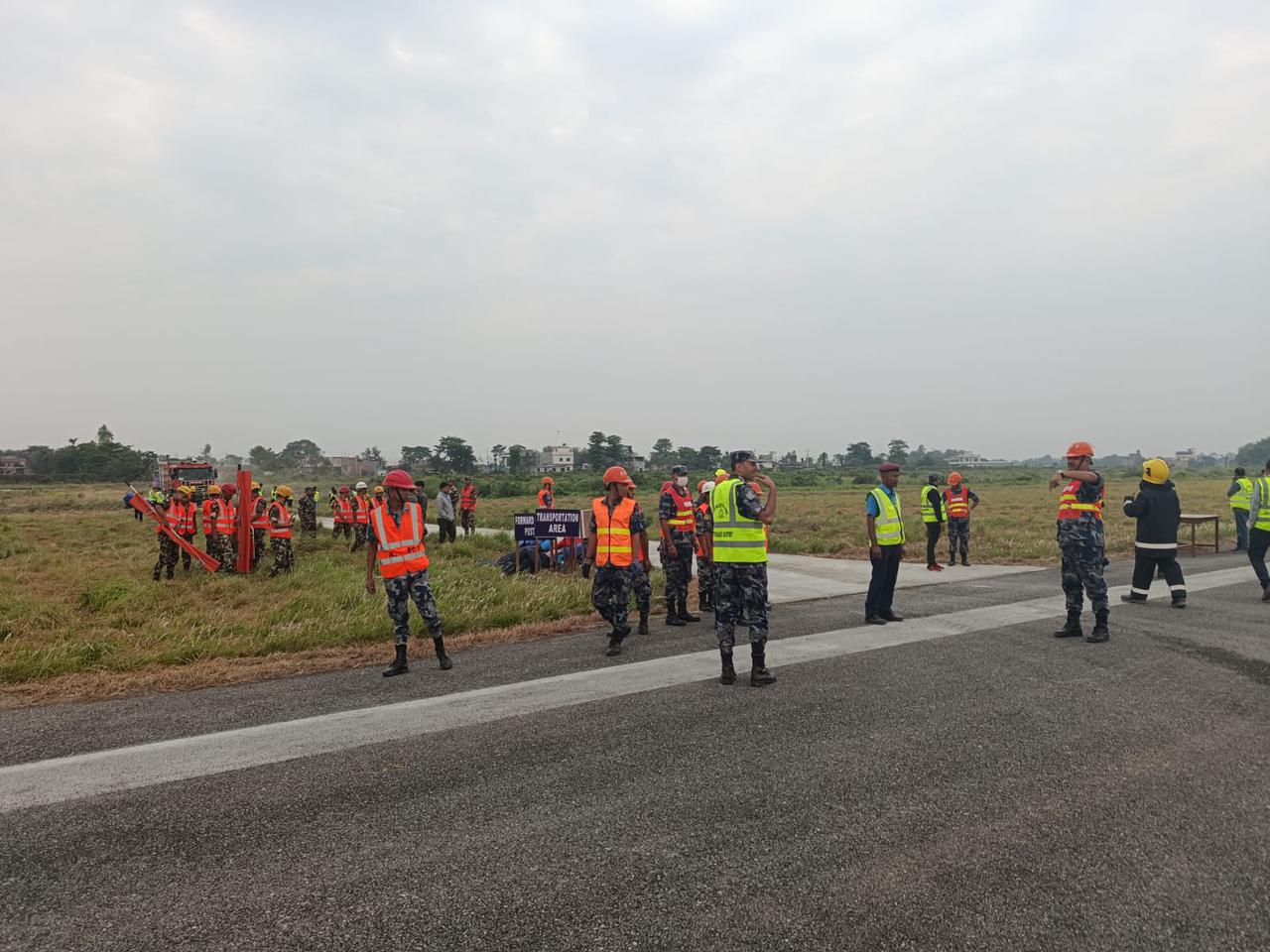 विराटनगर विमानस्थलमा ‘फूल स्केल एक्सरसाइज’, दुर्घटनापछिको उद्धार प्रणालीको परीक्षण